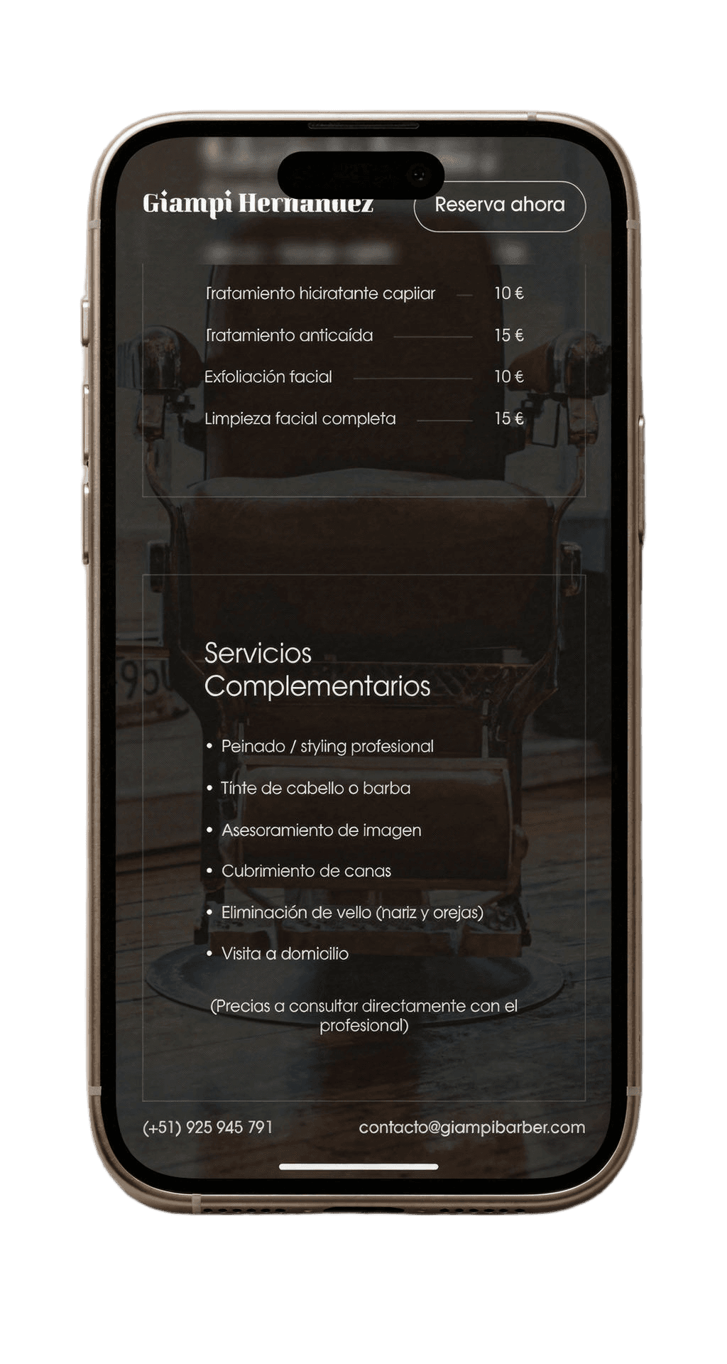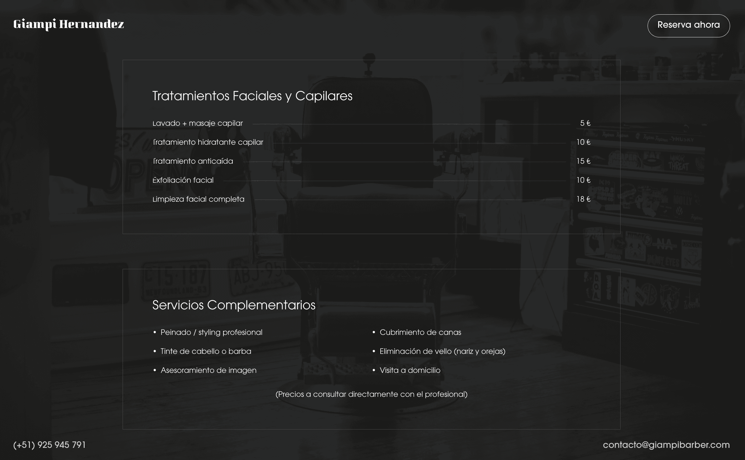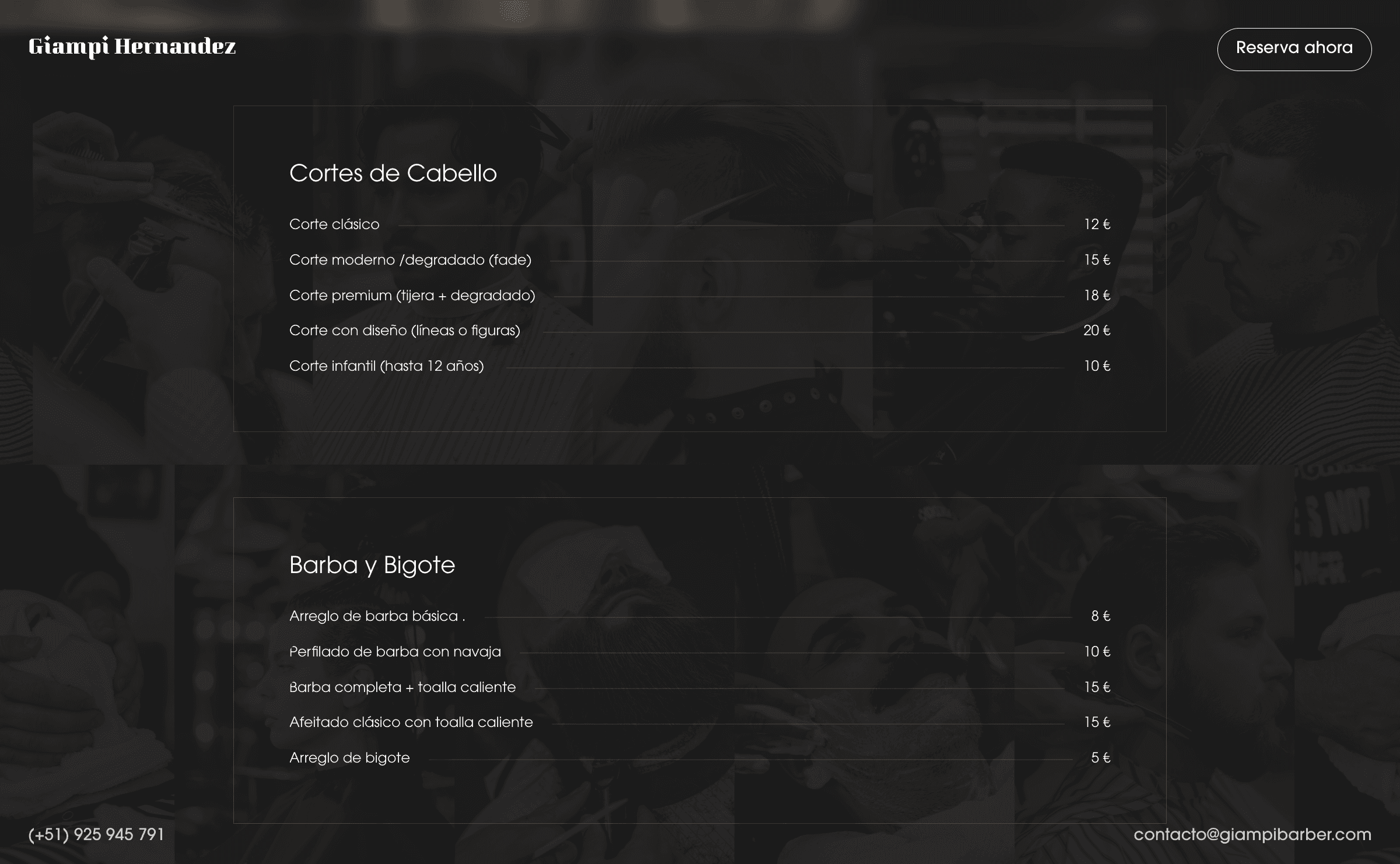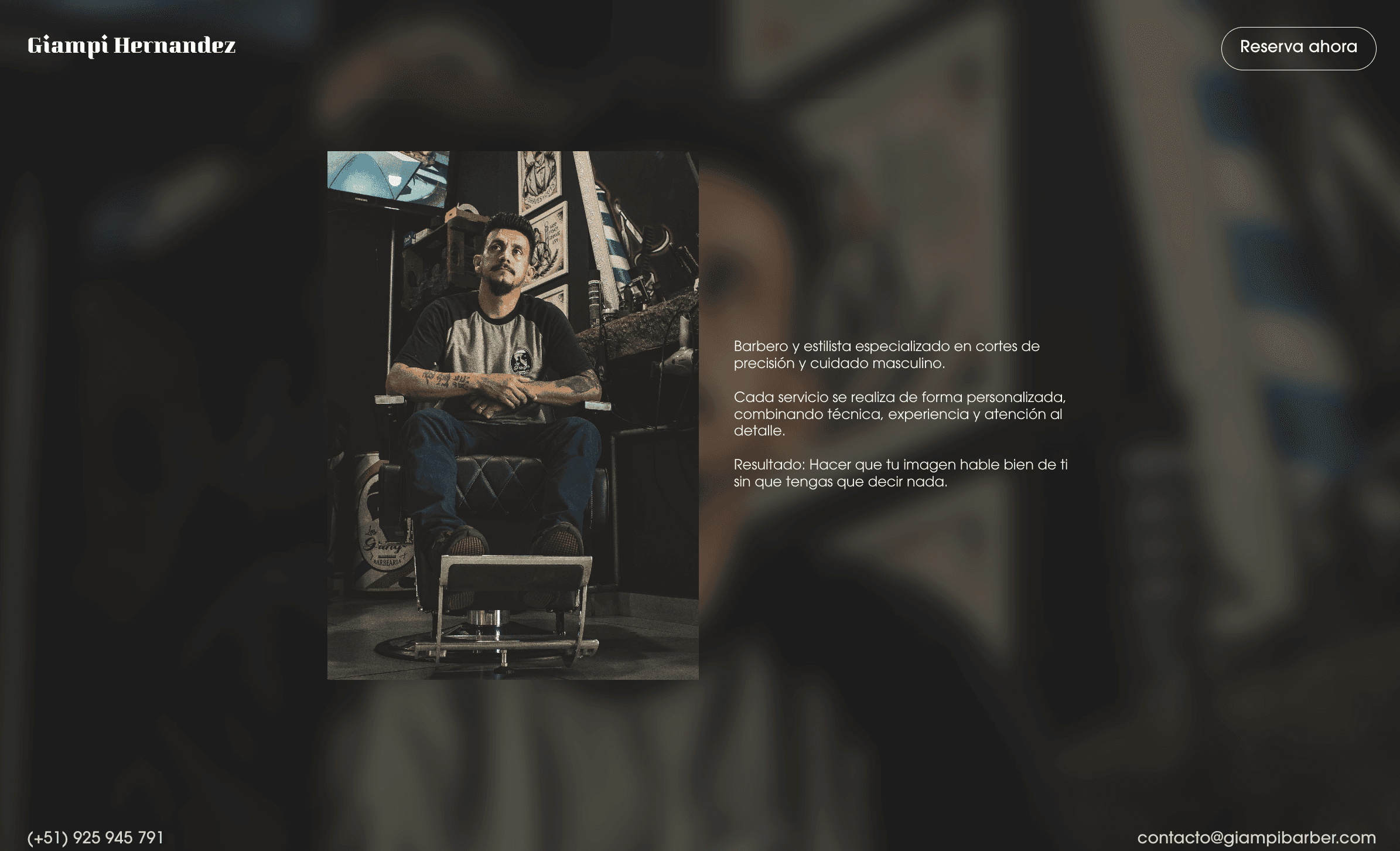 Un barbero-estilista con clientela fiel pero sin presencia digital. Dependía 100% de Instagram y recomendaciones. Sin web profesional, perdía credibilidad frente a barberías con presencia online establecida. Necesitaba un sitio que mostrara su trabajo, servicios y permitiera reservar cita directamente.